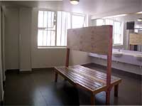 室内は下のベッドの下に2つの大きな鍵のかけられるロッカーがある。 |