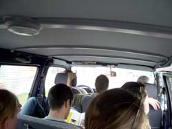 バスに到着すると、中には白人さんがぎっしりと座っている。5列ある座席は、補助席も使って1列3人ぎっちり。おやおや?余裕を持って座れるのが、シャトルバスなのでは?