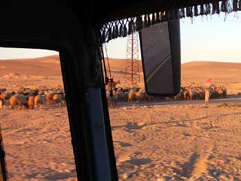 ベドウィンが羊を連れて帰ろうとしている。
