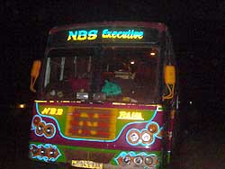 私たちが到着してすぐにバスも到着。しかし、きらびやかな蛍光塗料で塗られたバスの名前は「NBS