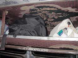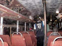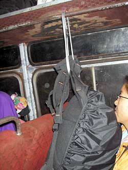 バスの中は天井にカーペットが敷いてあるような内装で、だからエグゼクティブなのかどうかはわからないが、全体的に埃っぽく煤けて座席も左2席、右3席の一列5席。狭い。