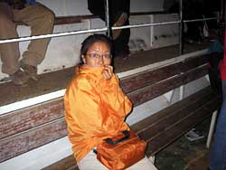 吹きっさらしのフェリーに乗っているとだんだんと冷えてくる。昼間はあんなに灼熱の太陽が照っていて暑かったというのに。そもそも、こんな時間まで移動すると思っていなかったし、しかもオープンエアーのフェリーに乗るとは思っていなかったので、薄着の用意しかしていなかったのだ。暖かいジャケットはスーツケースの中。バスに乗せてくれとかけあってみたが、船の上ではバスに人を乗せないことになっているらしく、拒否された。