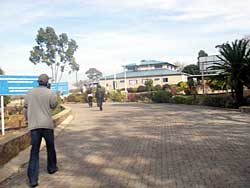 スワジランド・バックパッカーズの看板は、サンダウナーズの左手に見え、看板のある坂道を登ると、そこに家があった。これでスワジランド到着。