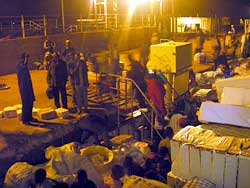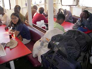 フェリー乗り込み開始。2等座席に場所を確保して一息。 |
