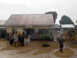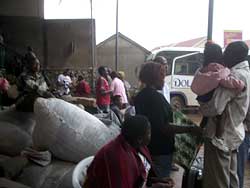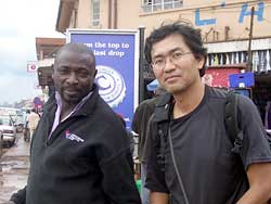 大雨に見舞われ雨宿り。雨がやんでから私は荷物番、夫が両替屋に行きタンザニア・シリングからウガンダ・シリングに換金 |