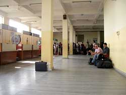 空港は小さな管制塔はあるものの、田舎の役場のようなたたずまいのひなびた空港で、中に入ると奥に横並びに航空会社のブースが並んでいるだけ。