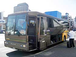 バスはインターシティーの大型バスよりは小さいタイプだが、下に荷物を入れる場所もあるし、シートも悪くない。どこか別のバス会社から払い下げたらしく、別の会社の名前がそのまま残っている車体にNaked