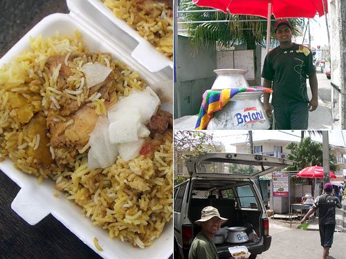 世界的有名観光島モーリシャスの中でも一番高級ツーリスティックと言われるグラン・ベで何と屋台が出ていた。スーパーUというとても大きなスーパーマーケットの手前。Brianiビリアニとはケニアでいうところのピラウ。サフランの入った炊き込みご飯にジャガイモと鶏肉が入っていて、薄切りの蕪の漬物みたいなのを上にハラッと乗せてくれた。平日はグラン・ベ西のモン・ショワジービーチで営業し、週末だけここにくるんだって。安い、旨い。