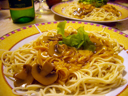 夜は簡単にえのき茸とマッシュルームのオイスターソースあんがけの中華麺にした。えのき茸の缶詰とマッシュルームの缶詰を炒め、水とオイスターソースとごま油と醤油と塩・コショウを加えて煮る。最後に水溶き片栗粉でとろみをつけてできあがり。茹でて水を切った麺に、かけた。前回干し椎茸でやった時よりも癖がなく、キノコ類とオイスターソースがよりよく馴染んで香ばしい香りを出している。こっちの味の方がおいしく感じられた。