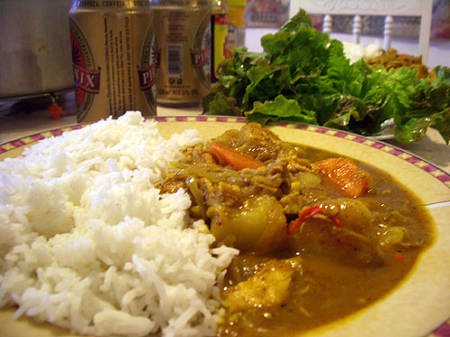 献立:カレーライス、サラダ、ビール