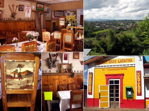 マダガスカルでは食堂をホテリーHotelyという。宿泊はやっていない。ホテリー・ガシは食欲を減退させる目立つ色の建物だったが、内装はアンブシトラの近郊の村の名産である木彫りや寄木細工を多用してとてもシックで良い感じの店だった。椅子の背には見事な寄木の絵画があり、壁の装飾も凝っている。店内で従業員に厳しく檄を飛ばしている女主人の別の一面が見えてくる。