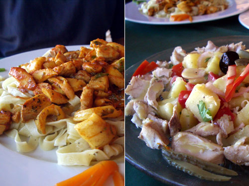 昨晩悪寒と高熱が出て動けなくなり、昼も宿のレストランで。タリアテッレのイカは火を入れすぎない柔らかさを保ちつつトマト味がよくしみておいしい。私はアントレの魚のサラダだったが、大量の魚のボイルを周囲に散らし、中はジャガイモ、玉葱、トマト、パセリ、オリーブに手作りらしいマヨネーズソースがかかっていた。アントレにしてはメイン並みのボリューム。これにメインを食べる仏人の胃袋は強靭だ。