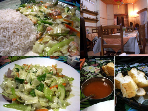町中が停電しっぱなしのトゥリアーラでは、暗くなってからの行動が不便かつどのくらい危険かもわからなかった。ということで、昼に行ってホテルからも近い中華に再び足を運んだ。野菜炒めと海老野菜炒めは中華的とろみがついていてうれしかった。バゲットがついてくるのがマダガスカル風。奥に長い店内はこざっぱりしている。JICAも来たそうで店員の日本人の印象はよいようだった。