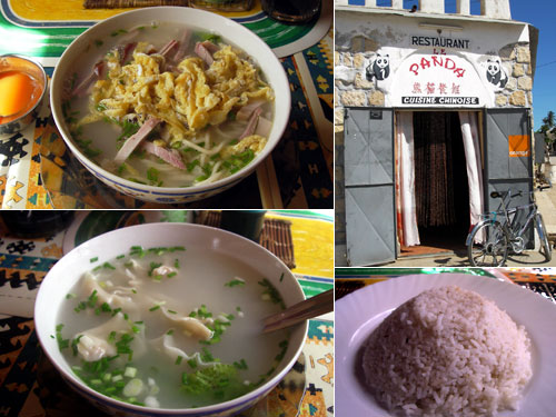 トゥリアーラという町にやってきてふと目に入った漢字。それは街角の中華料理店だった。イファティで食べた料理らしい料理といえばフレンチばかりで、あとはキャッサバとか地元食堂のスープだったから、この漢字名の店に私たちは飛びついた。ワンタン10個が入ったチキンブイヨンのスープは久しぶりにアジアの味でおいしかった。麺も見た目よりたっぷりしている。ご飯は古古古米的でおいしくないがその他はグッド。