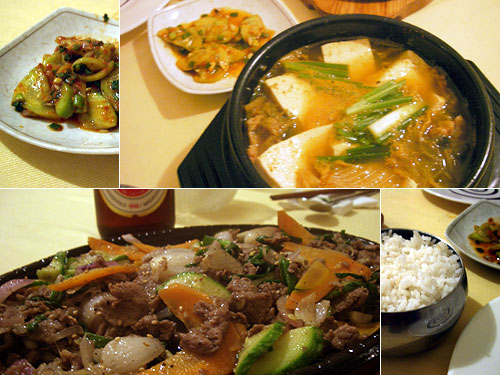 献立:プルコギ、キムチチゲ、ご飯2つ、ビール大1本