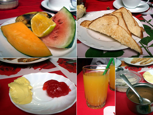 宿の2階でやっているレストランで朝食セットを注文したら、2月にケニアでお目にかかったようなイギリス系の食パン、マーガリン、イチゴジャムと見事にイギリス系というかアフリカ大陸系朝食。マダガスカルのお粥が早くも恋しい。モーリシャスのバゲットはどこに行った。果物がついてくるのはいい感じ。ただし人口甘味料臭いジュースとキリマンジャロが近いのに粉末のインスタントコーヒーってのはどういうことなのか釈明してほしいのだ。