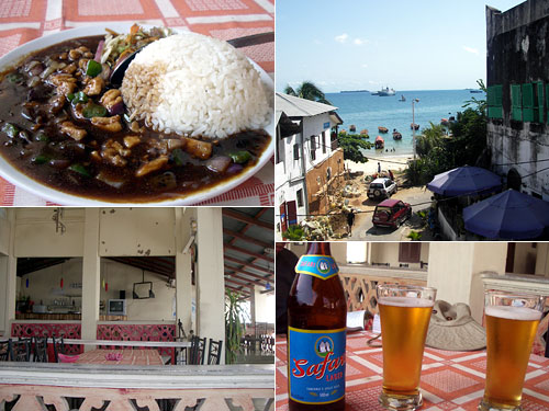 昼のランチスペシャルを注文(Ts3500=約350円)。鶏か牛かキングフィッシュを選択して、これに野菜3種とご飯。いいじゃない。ところが出てきたのは黒い醤油タレに埋まった小さなチキンや魚の角切り。野菜は玉葱と人参ときゃべつの千切り炒め。偽りはないが値段の割には貧乏臭い。この醤油は「ソイソース・ダーク」。色の割には味は全然塩っ辛くない。味はまぁまぁだが見た目がねぇ。単品はいいのかも?