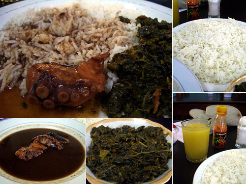 せっかくだからタコって奴を注文してみると、本当にタコをトマトで煮た、トマトのかけらもないシンプルなものが出てきた。タコはとても柔らかくなるまで煮込んでトマト汁にはタコのだしがたっぷり出ていた。もう少し野菜などが入っていると嬉しいなぁ。でもおいしい。野菜のココナッツミルク煮も定番。どれも量が多くて女子なら二人でも十分だと思われる。