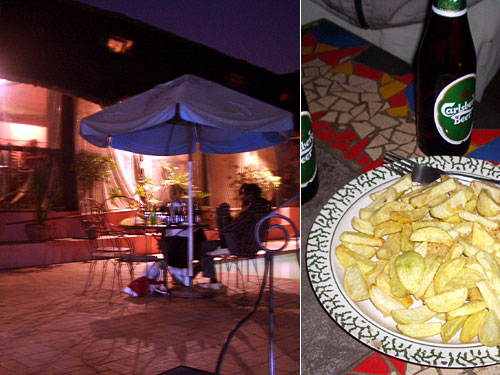 宿に併設のバーレストランはものすごい混みよう。というのも、丁度ハッピーアワー(6時から7時半)にあたっていたからだ。宿泊客以外に地元でいけていると思っているらしい兄ちゃんが大挙して、若い白人女性と歓談している。青く光るプール、オープンテラス、ビリヤード台。ちょっと古いアメリカの田舎の流行のカフェバーに来たみたいだ。曲も90年代前半にジュリアナ東京でかかっていた曲だったりして懐かしい。