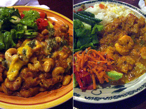 夫は豆と野菜のパスタにしてみた。あまり豆は好きではないのだが、ペーストした豆とマカロニの茹でたものを混ぜた上にほうれん草入りクリームソースとチーズがかかってオーブンで焼いてあるこのパスタは非常においしい。海老カレーはココナッツを使ったマイルドかつスパイシーなカレー。今日は野菜も豊富だったし、今まで食べた数日の中で一番満足度が高い食事だった。それにしても、奥さんは料理が上手だ。