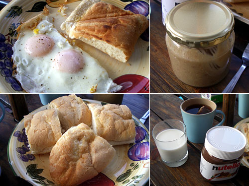 長距離移動の翌日だというのにこれから3日間の砂漠キャンプツアーにでかける。シナモン砂糖がけクレープもおいしいが、ここはやはりパワーのつく朝食を自炊することに。スーパーで買ったバゲットはフランスのとは大分違うがフカフカしてこれはこれでおいしい。チーズをはさんでホットサンドで焼き目をつけると尚グッド。お腹いっぱいでツアーに出発だ。