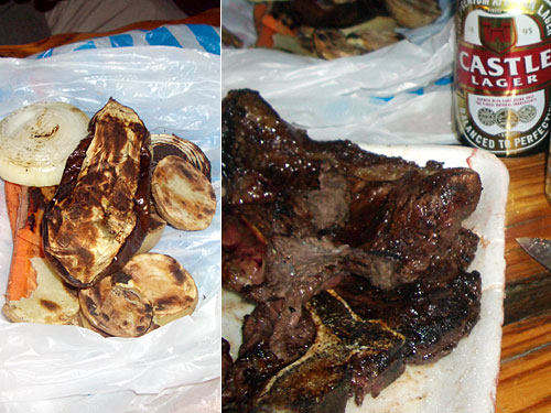 肉はショップライトで購入したが後で立ち寄ったスパーの方が良い肉を販売していた。同じTボーンでも私達が買ったのは筋っぽい部分だ。大丈夫かなぁと不安もあったが、焼いてみるとこれがおいしい。この肉レベルでフライパンじゃぁ硬くっておいしくないはずなのに、さすがBBQだ。今回ナスは縦2つ割にして焼いた。これも大成功。スライスだと中のおいしい部分が少なく焦げっぽくなるからだ。BBQ行脚も第二ステージに入ったと言える。