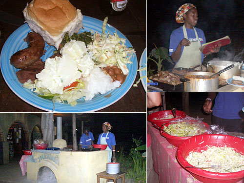ザンビアのビザ免除、宿2泊、食事2回、ビール1本ついてくるという宿のプログラムでザンビア入り。初日の夜、食事券を早速使ってみた。今夜のメニューはアフリカ式BBQ。プール脇のBBQ場に炭火が用意され、かぐわしい香りが漂う。牛肉とソーセージは配給制、シマと呼ばれるとうもろこしの粉を練ったものやサラダ、豆の煮物、ポテトサラダ、パンは好きなだけ取れる。しかーし。肉が硬い。焼きすぎだ。私に焼かせてくれー!