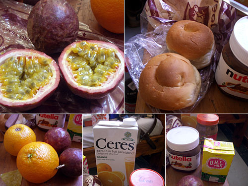 献立:パン、オレンジ、パッションフルーツ、などなど