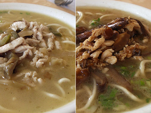 豚肉麺は豚肉とザーサイを塩味で炒めた具が乗り、鶏肉麺は鶏肉と干し椎茸を醤油ベースで甘辛く煮た具が乗ってきた。アフリカの鶏肉は固い。ここのも例外ではないが、繊維に直角に細かく切ってあるのでそれを感じさせない調理方法をしているのが秀逸だと思った。麺は太目のストレートで思ったよりもこしがあっておいしい。スープは豚骨?白濁してこってりとだしの効いた味。1杯でお腹一杯になった。