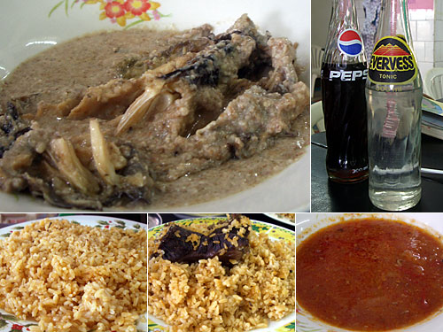 献立:魚のピーナツ煮、ピラウ、ペプシ、トニックウォーター