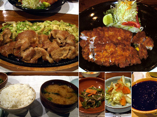 2人とも豚肉料理。しょうが焼きはたっぷりと厚めの肉にしょうが風味がよく聞いて、トンカツもボリュームたっぷりでマスタードが付いており、別に来たソースが甘くてとてもおいしい。定食には香の物、インゲンと人参の胡麻和え、ご飯と味噌汁が付く。ご飯は粘り気のあるご飯で、久しぶりの短粒米に思わずおかわりしてしまった。雰囲気と言い味と言い値段に相応する満足度だった。