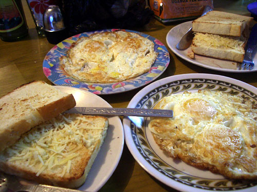 今までに見たことのないチーズトーストを注文した。出てきたのは火であぶった食パンに生のにんにくのみじん切りとチーズを載せて、「できれば熱で溶けてチーズトーストになって欲しいなぁ」という願望が込められたものだった。このチーズが溶けてにんにくにも火が通っていたらパンもチーズもおいしいのでどんなに素敵だったろう。惜しいなぁ。火釜作ればできるのにねぇ。