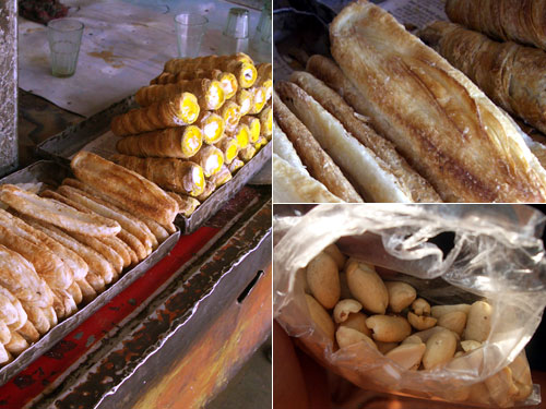 バスで移動。バスターミナルで停車する度にミルクとスパイスを入れて煮た紅茶、チャイとスナックを販売する店がある。パイ生地みたいなのは一つRs1(約3円)。甘くないエンゼルパイみたいで、なかなかおいしい。クリーム入りもあったが、おぞましく黄色いのでやめておいた。バス内に少年が売りにきたピーナツは手のひら大の袋でRs5(約15円)。これも香ばしくてなかなか美味だ。Rs5で揚げパンとカレーというのも定番の朝ごはんだそうだ。