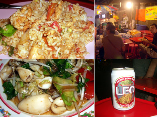 タイの安宿が集まるカオサン通り近くに宿をとった。夕方から屋台がたくさん出て、にぎやかなことこの上ない。中でも人が多い屋台で、他の人が食べていておいしそうな炒め物を注文した。イカも海老もプリップリで甘くて、何ておいしんでしょう。ここ数日、機内食以外にまともな食事をとっていなかった私たちにとっては、バンコクは天国のように思われた。清潔な空気、おいしい食べ物。ああ、インド離れて嬉しい。