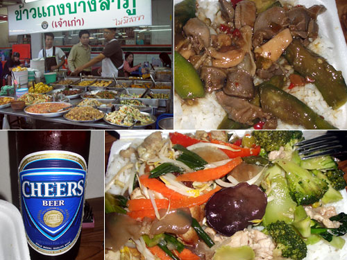 ランブトリ通りの東端、セブンイレブンの目の前と道をはさんだ場所に2軒の似たような惣菜屋が夕方出てくる。ご飯とおかず1種、2種、3種を選んでその場で食べることも持ち帰りもできる。体調がよくないので持ち帰ることにした。私は砂肝とキュウリときのこの唐辛子炒め。夫は鶏とブロッコリー炒め、もやし入り野菜炒め、豚肉と赤ピーマンの炒めでご飯が見えないくらい山盛りだ。辛くないおかずも多く旨い。