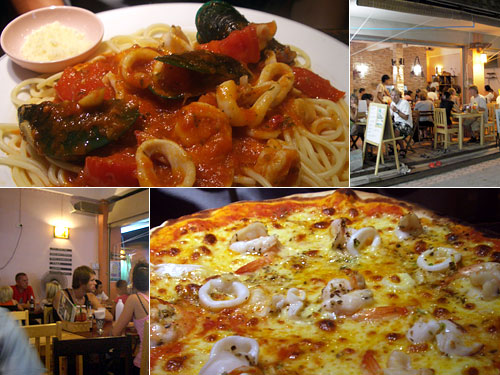 宿の近くには同じレストランが2軒も店を出している。白人旅行者でいつも満席になっているこの店からはピザを焼くいい香りが常にぷんぷんと漂っていた。今日、ついにこの香りに誘われて入店。でも夫はスパゲッティー。麺はゆで過ぎ、量は少なく、おいしいのだが不満。一方のピザは裏切らなかった。薄いカリッと焼けたクラフトにチーズとイカ・海老たっぷり。でも高いなぁ、洋食。