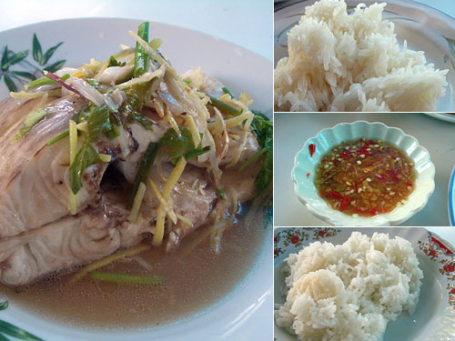 ツアーで連れてこられたタナホテル。ホテルを出て左に行き、すぐ先の2手にわかれた道を左折してすぐ右手の民家のガレージでお母さん2人が料理を出している。今日の昼のおかずはこの魚だけなんだけど、見ただけでおいしそう。一度通り過ぎたのだが引き返して食べて正解だった。川魚特有の臭みは生姜やねぎや香草で抑え、ふっくらした身の甘みとゼラチンのこくだけが残っている。甘酢ソースで絶品だった。