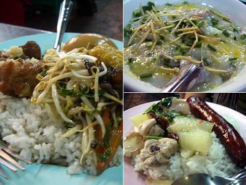 インドのコルカタで知り合った新婚旅行中の小池さん(ラーメン好きな旦那さんのニックネーム)夫妻と再会してディナー。といってもいつもの屋台なんだけどね。夫は腹の調子が悪いからと肉団子と卵入りお粥。小池さんは豚の角煮とゆで卵の醤油煮、厚揚げともやしと野菜の炒め。奥さんのメグーさんは鶏肉と大根とバジルの優しい煮込みと中華ソーセージ。話も進むし食も進む。