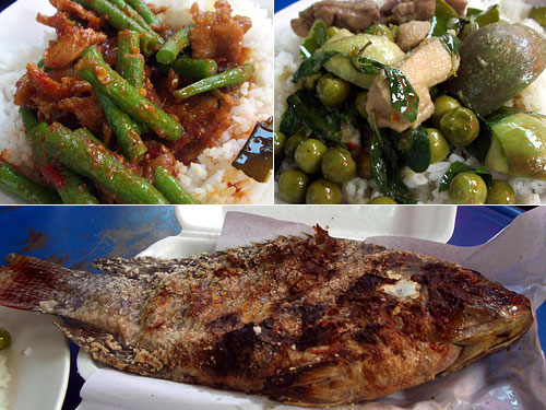 今日二人が選んだのはどちらも辛かった。私のはインゲンと豚肉の甘辛煮物。甘い、だけど辛い。夫のはココナッツミルクと唐辛子で煮込んだチキンとナスのような野菜とブドウよりも小さい粒の緑の野菜。この料理は定番らしくブドウのような野菜は中が種だらけで苦くて辛い。魚はジューシーだが泥臭さが強いし皮が硬すぎて食べられないので夫はNG。私はソースで臭みを消せるのでおいしいと思った。