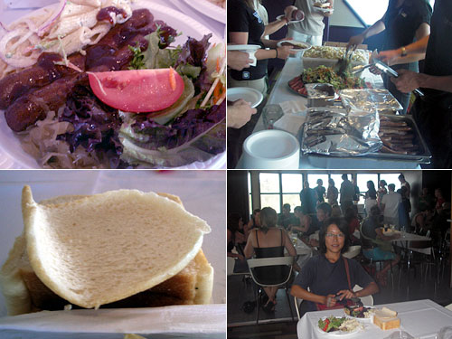 酔っ払って宿に戻ると今日は宿で無料BBQだという。おお、参加しよう!6時半になると全員ハーメルンの笛吹きの子供達のように宿の人につれられて到着したのは海沿いのバー。BBQ無料で食べさせるからここでお酒飲めというプロモーションだったのだ。焼き冷ましで異常にまずいソーセージをメインにサラダなど。さすがの白人若者も無言でかきこんでアルコールで流し込んでいた。