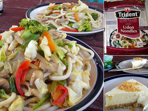 チューインガムと同じ名前のメーカーがうどんを出していて、これがスーパーのアジア食品コーナーでは一番安い麺になっている。うどんがそんなにポピュラーなのか?どんなものかと焼きうどんにしてみたら、これが案外おいしい。電子レンジで加熱した野菜からは水分が出やすい。そこにうどんを入れて醤油と塩・コショウで味付けすると野菜のうまみをうどんが吸って、何のブイヨンも使っていないのにちゃんと味が出ている。電子レンジいいかも。