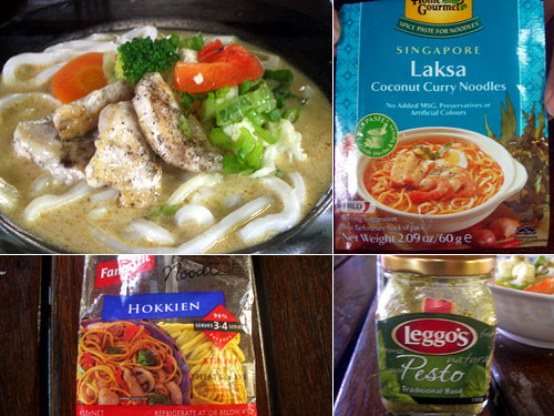 ラクサのペーストを買ってきた。多国籍の人が住みアジアも近いオーストラリアではアジア食品が充実している。ラクサはマレーシアのココナッツミルクカレーヌードルで、ペーストにココナッツミルクと水を加えてちょっと煮るだけでスープができる。甘くて酸っぱくてココナッツの濃厚さのある不思議なスープ。前回はシンガポール麺、今回はうどんで作ったがどちらもおいしい。具はチキンソテー、電子レンジ調理の野菜など。バジルペーストも合う。