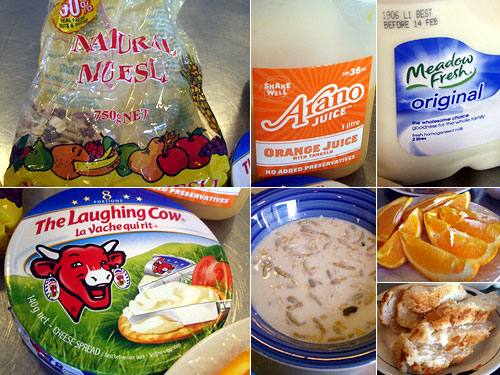 フリー食材にパンとオレンジとチーズあり。自前はミュースリーだけだったのに贅沢な朝食になった。赤い牛マークのクリームチーズはヨルダンからずっと見ているが今まではマッドカウMad Cowというネーミングだったのにここでは笑う牛になっている。MADは英語圏ではあまりに差別用語だから?オレンジジュースは保存剤なしのもの。この方がおいしい。