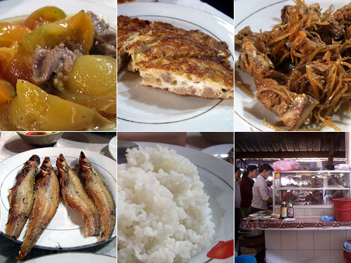 いくつかの市場内の食堂に通ってみて、最初に行ったお店の味が一番気に入り戻ってきた。今日はトマトと豚小間の少し甘めの煮物、ひき肉と玉葱入りオムレツ、小さな鳥と生姜の煮物、焼き魚。全てのおかずが甘い中で、この店は甘目が控えめで私たちの舌にあうし、前回とは異なるおかずが出ていてバリエーションも豊富そうだ。店の人も2回目なのに顔を覚えていてくれてすでに常連気分になれるのもいい。