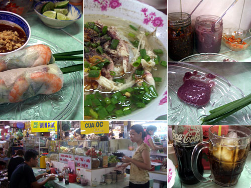 定番の生春巻きとフォーをお昼に。生春巻きには甘くてピリッと辛いトロトロしたピーナツソース。芯に通っている香りの強い草とよく合う。フォーは上に乗る肉により名前が変わり鶏ならフォーガーになる。ビーフン麺だがライムや唐辛子やニョクマム(魚醤)で自分好みにできる。卓上には唐辛子2種の間に美しい紫の調味料が。これも魚発酵系でやたらに臭い。でもコクがあって旨。
