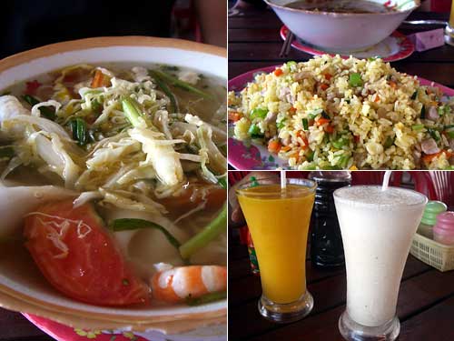 献立: シーフードフォー、豚炒飯、マンゴーシェイク、バナナシェイク