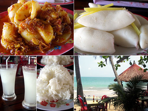 午後のバスでムイネを離れる。こんなにイカをおいしく安価で味わえる場所はベトナムといえどもあまり他にはないだろうと、最後のイカ攻撃。で神妙に夫が選んだイカの生姜蒸しは本当にイカと生姜だけであまりのシンプルさにこれだけ食べ続けるのはきつい。私のはレモングラスとチリの炒め。こちらはこってりと甘く2品はバランスが取れてよかった。今日の海は凪で美しく見える。