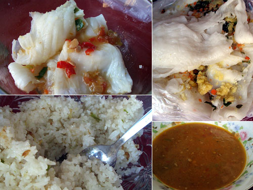 朝御飯でも食べようと朝7時半頃宿の1階におりると従業員のお母さんが他の従業員用に手作りの炊き込みご飯と買ってきた麺を用意していた。それを私たちにも振舞ってくれるという。麺は米のラザニア風で入り卵や葱や人参がまぶしてあり、これに納豆のような香りでやや甘辛いソースをかける。これもおいしいのだが、炊き込みご飯が絶品。揚げにんにくと葱と唐辛子と少しニョクマムと油かなぁ。嬉しかったなぁ。