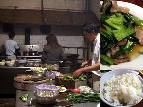 バス移動で夜9時過ぎにやっとドライブインで休憩。メニューはなく材料を選んで厨房に行って調理方法を指定するという注文方法。平均炒め時間は2分〜3分というスピードで40人の料理が出て食べ終わるまでに30分。それにしても客は野菜はこう切れ、味付けはこうしろと言っているらしく、そのこだわりがすごいし、即座に要求に答えている厨房もすごい。中国初日にして食の真骨頂を見せられた夜だった。
