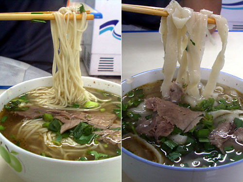 スープはいずれも同じ鍋から汲み出されるのだが、牛コツなのかなぁ、ダシがしっかりきいてかなりコショウが強いものだった。これに薄切りの牛肉と葱が乗る。とにかく打ちたての麺がまずいはずがない。注文をきいてから麺を打つなんて贅沢というかスローフードだ。もちもちとしてこしのある麺は本当に旨い。蘭州の店が流行るのもうなずける。因みにここはモスリムの人が多いので羊も出している。